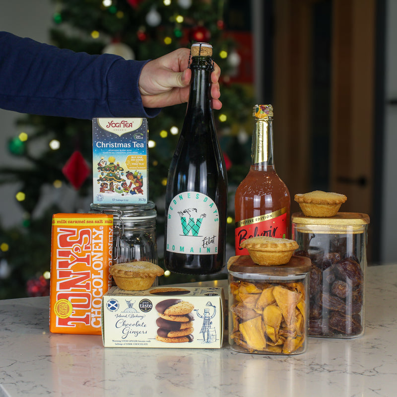 This bundle is packed with sweet festive treats in refillable packaging, or from ethical favourites – juicy dried fruit, rich chocolate, crumbly biscuits and proper mince pies. Perfect for gifting, sharing, or hiding at the back of the cupboard “for later”.