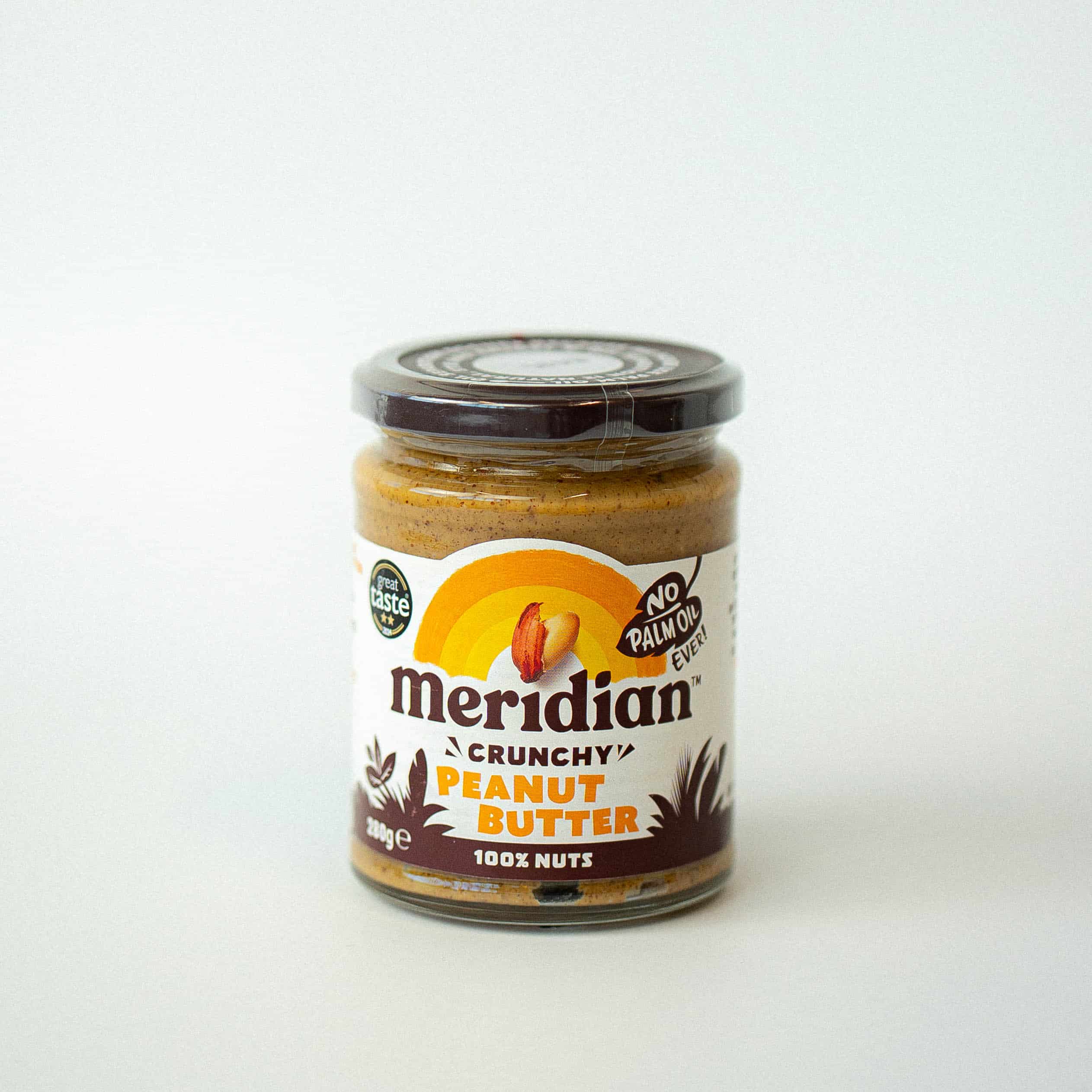 This organic crunchy peanut butter is a good source of energy, crammed with 100% peanuts. Meridian roast the whole peanut in their natural skins, then crush them for a perfect crunchy texture. Delicious on toast, crackers and crumpets or add to shakes, cakes and bakes.