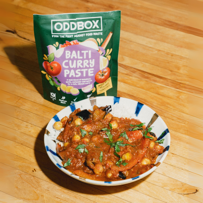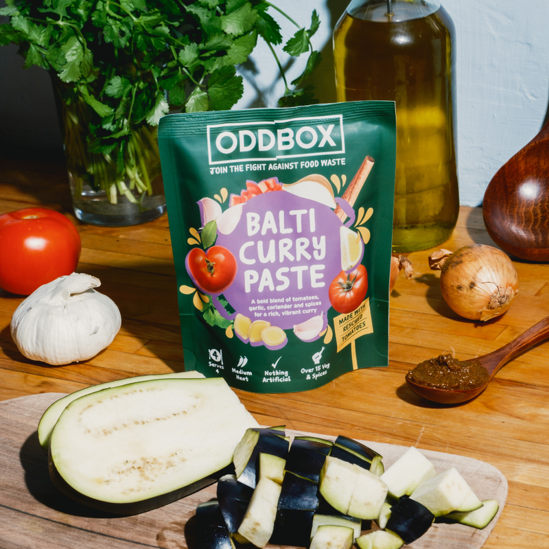 Fight food waste the easy-squeezy way with Oddbox Balti Cooking Paste. We’ve crammed our cooking pastes full of rescued tomatoes – “too small” or “too odd” for supermarkets and restaurants, but just as delicious on the inside.