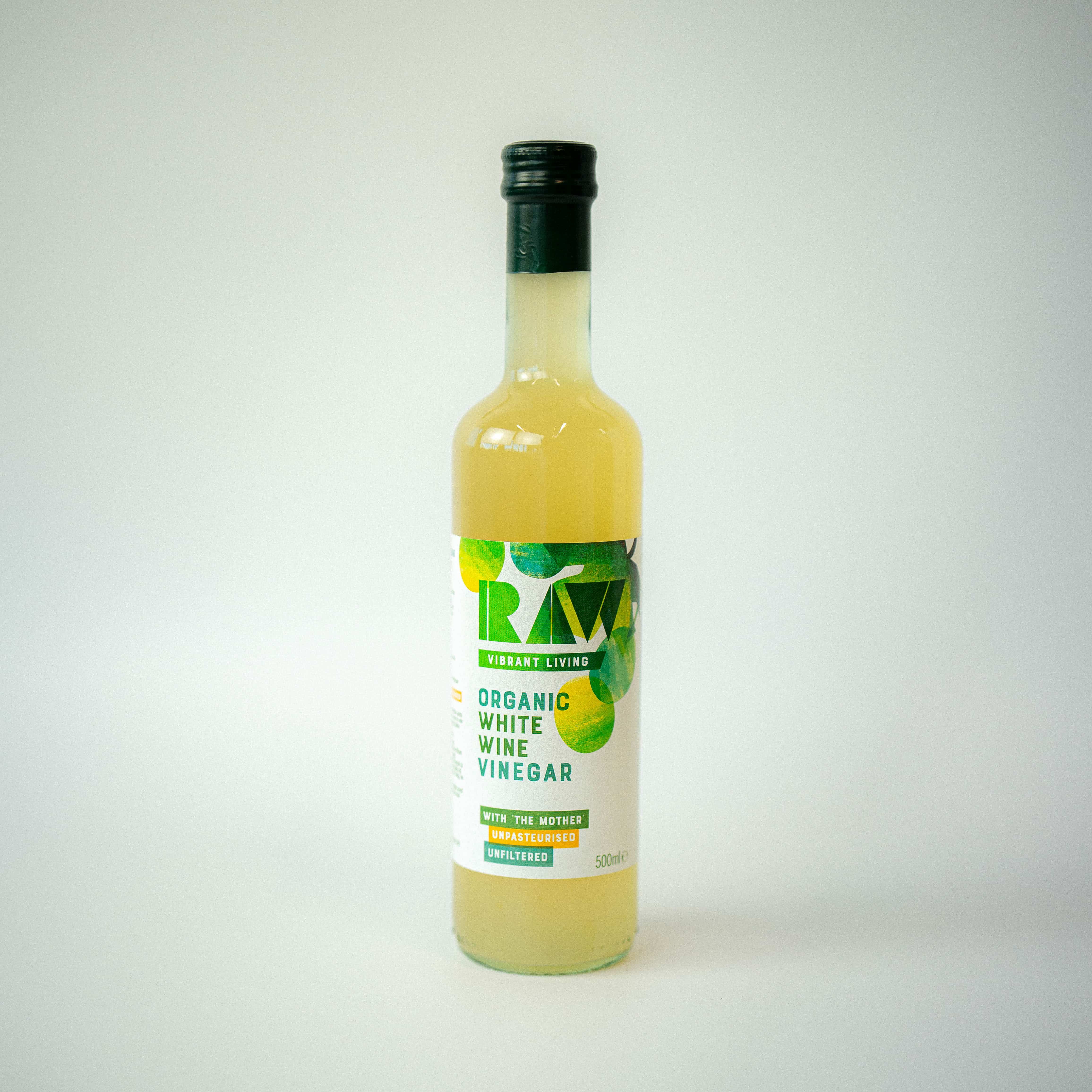 Raw Health has an amazing range of raw, organic and naturally fermented foods. This white wine vinegar is light and zingy, and made using organic white wine.