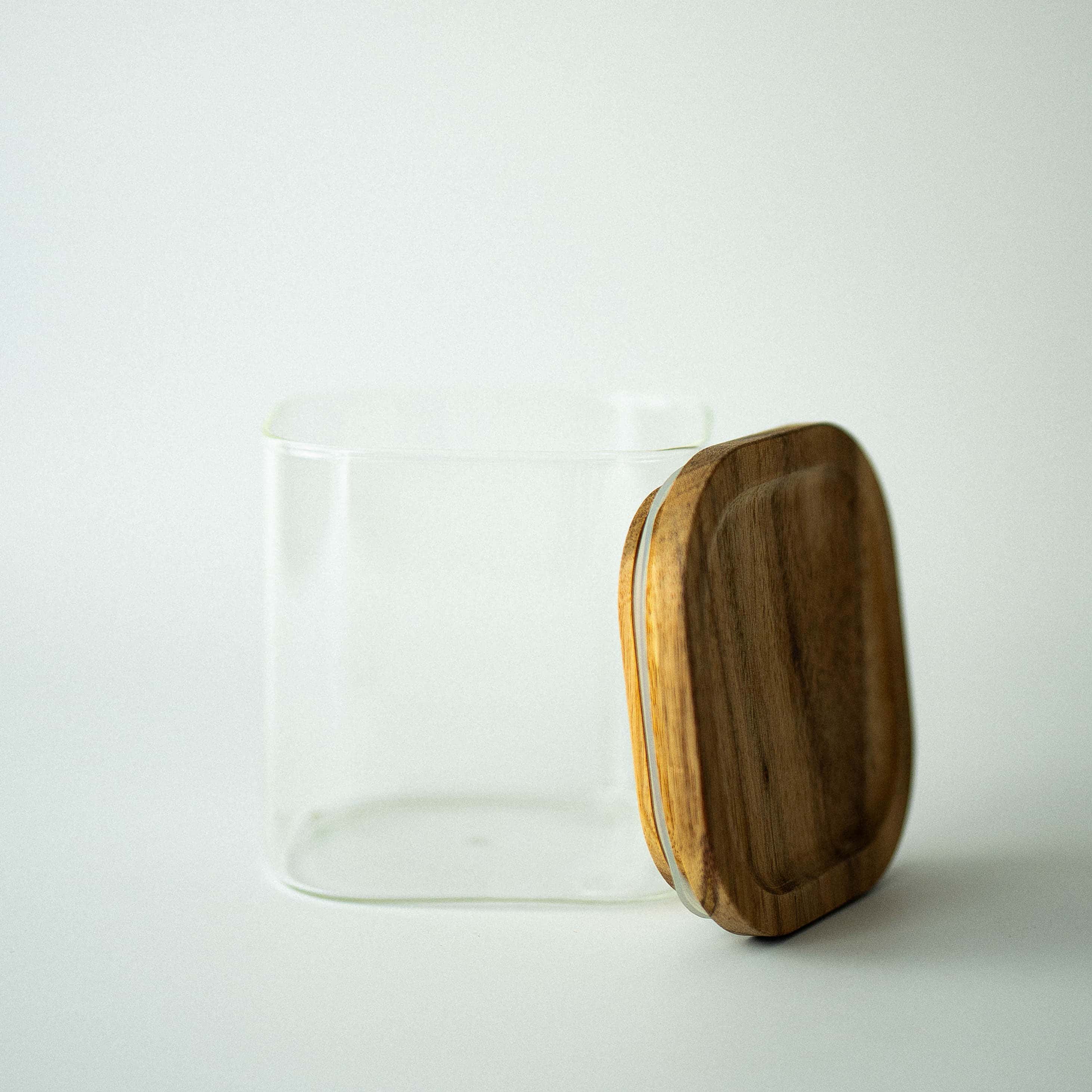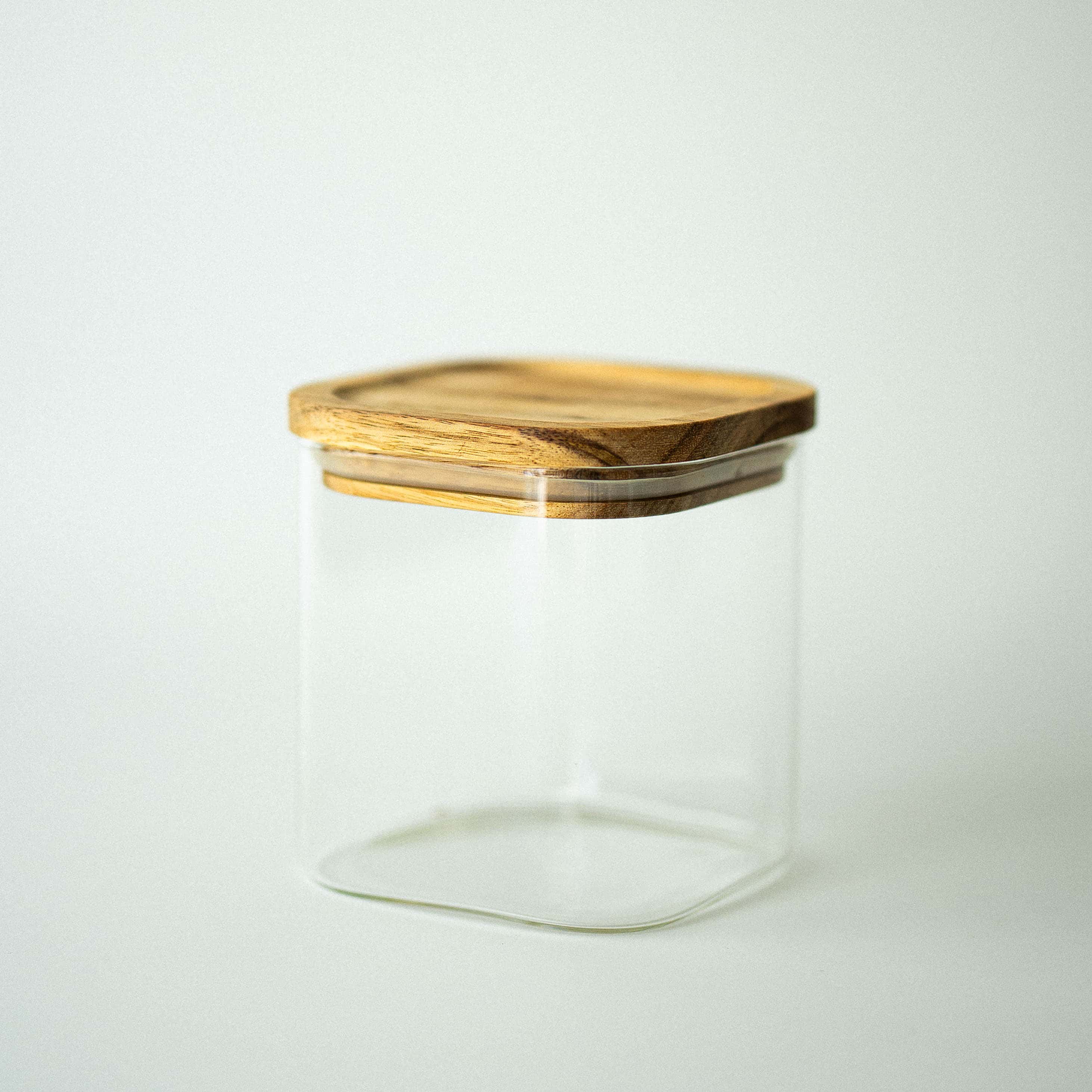 Square Glass Jar Wooden Lid 680ml