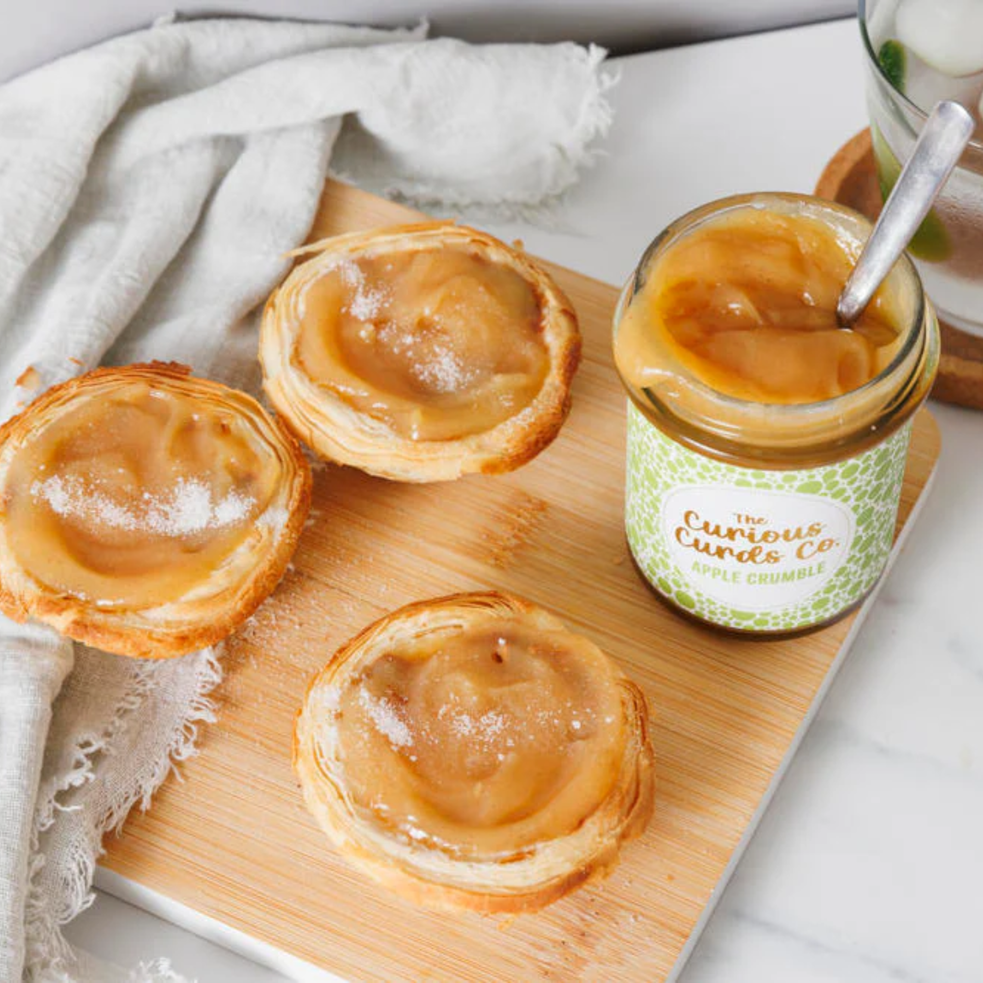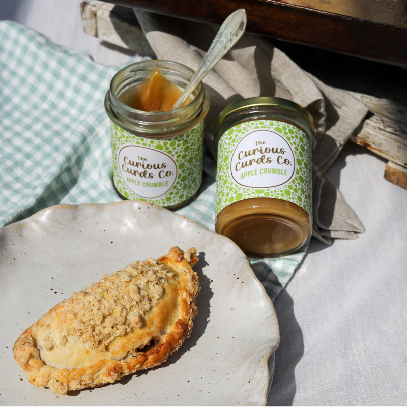 The homely, warming taste of freshly-baked apple crumble captured in a thick, fruity curd. Delicious on toast, scones, or straight out of the jar with a spoon.