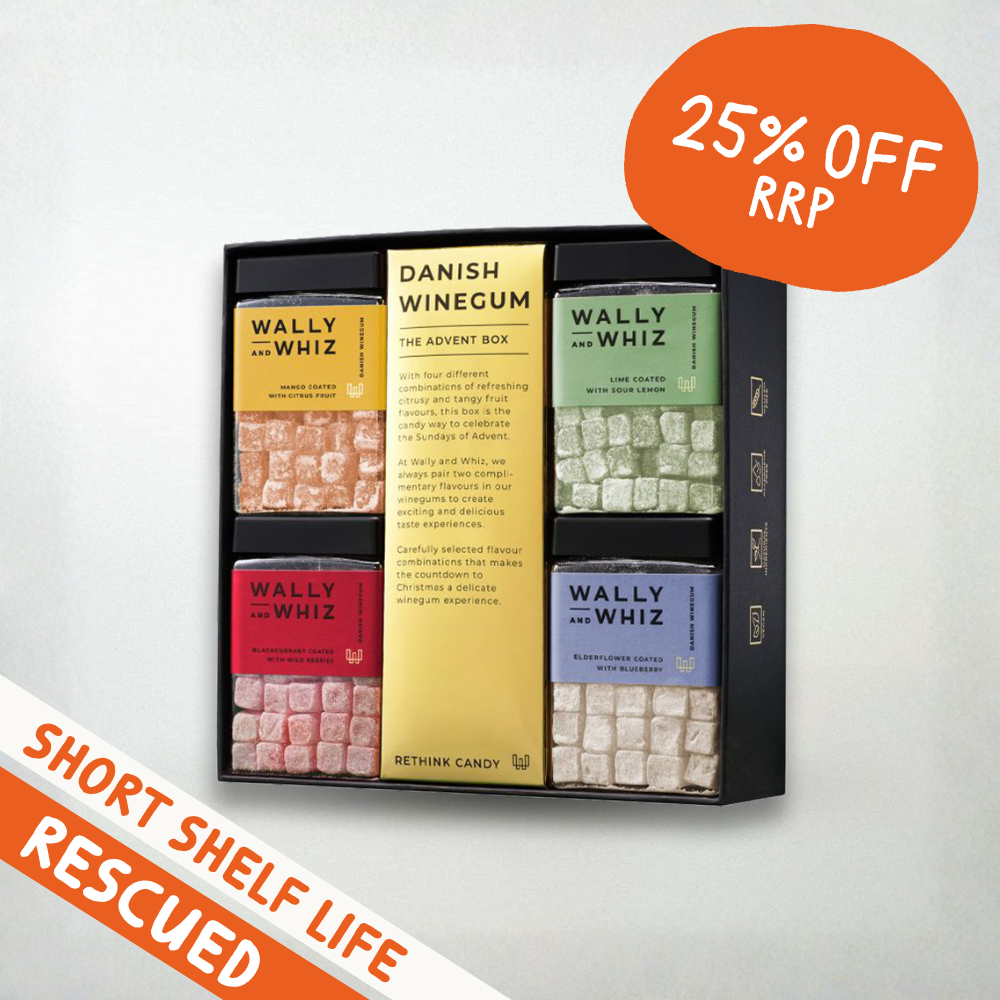 Four festive cubes filled with soft, fruity wine gums in seasonal flavours. Vegan, gluten-free, and beautifully boxed for a Nordic twist on Advent sweetness.